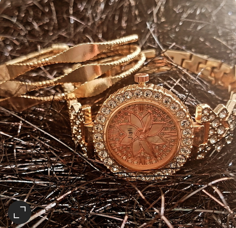 ست ساعت نگینی زرگلد و بنگل سه تایی فری سایز