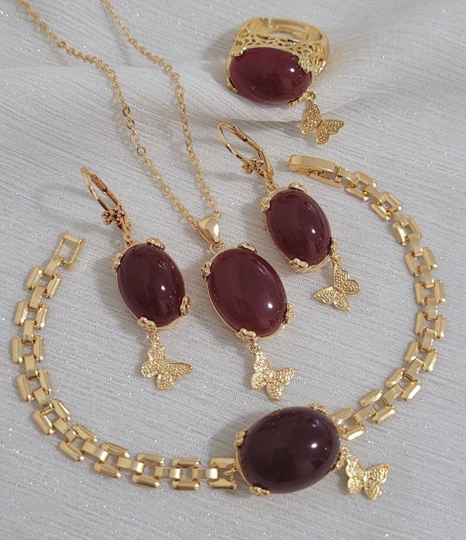ست سنگ طرح طلا سنگ عقیق و دلربا