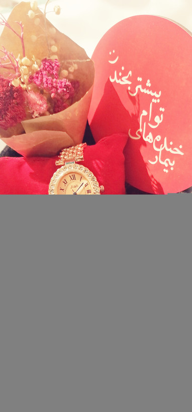 اقلام همراه : ساعت نگینی. تابلو عشق. دسته گل خشک. قلب کوچک شیشه ی. پک ولنتاین
